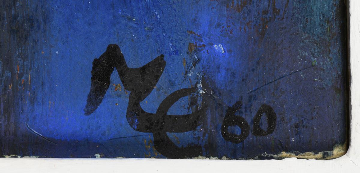 Öl/Malkarton. Rechts unten monogrammiert. Datiert: (19)60.