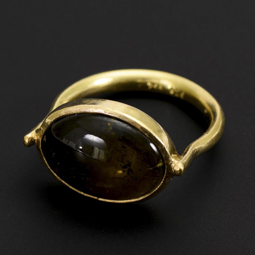 Turmalincabochon in geschlossener Zargenfassung, zwischen mittlerer Schiene.