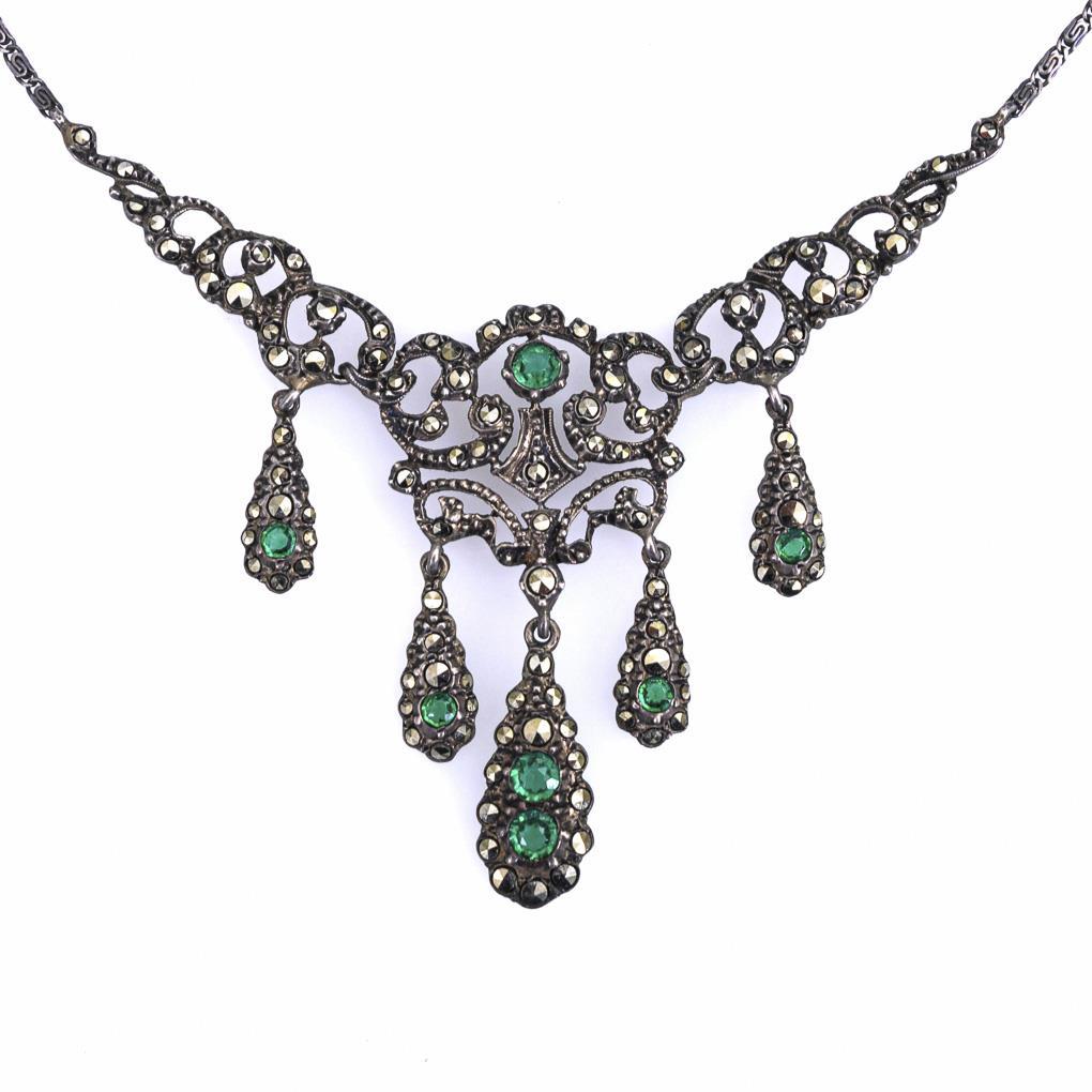 Schauteil mit Imitationen und Markasitbesatz, zwischen S-Panzerkette mit Ringfederschließe.