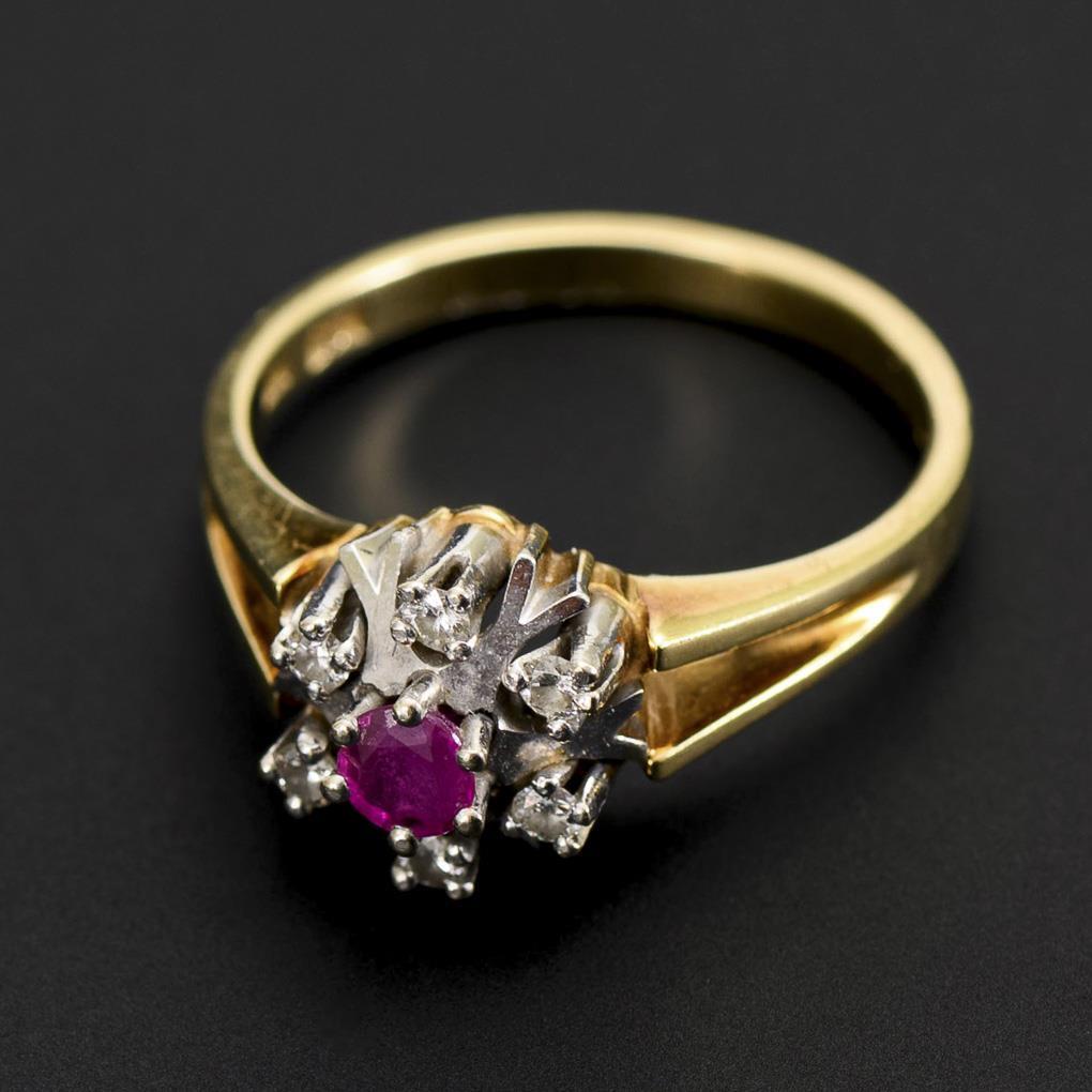 Gelbgold/Weißgold 585 gestempelt. Ringgröße 55. Diamanten zusammen 0,13 ct.