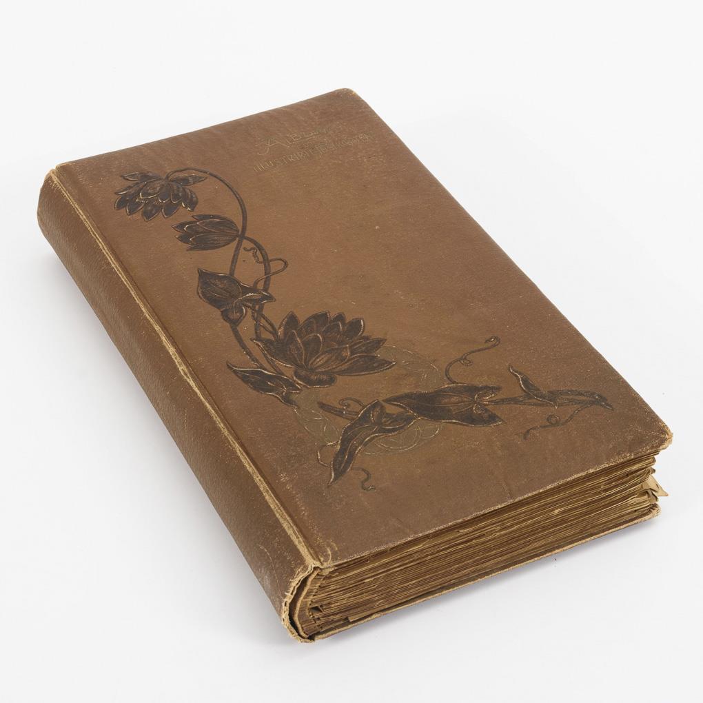Verschiedenste Glückwunsch- und Kitschkarten. Im braunen "Album für Illustrierte Postkarten", mit geprägter Blume. Album mit starken Gebrauchsspuren.