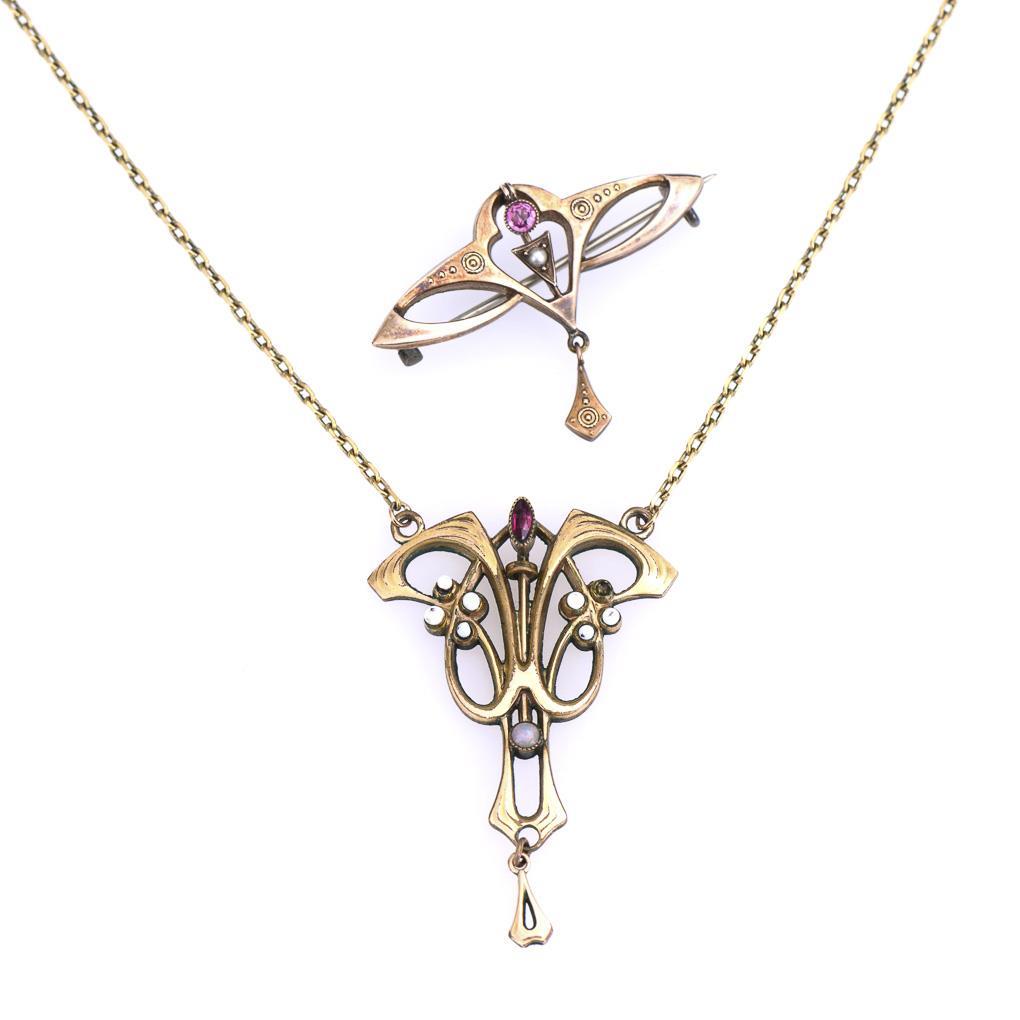Jugendstilcollier und Brosche.