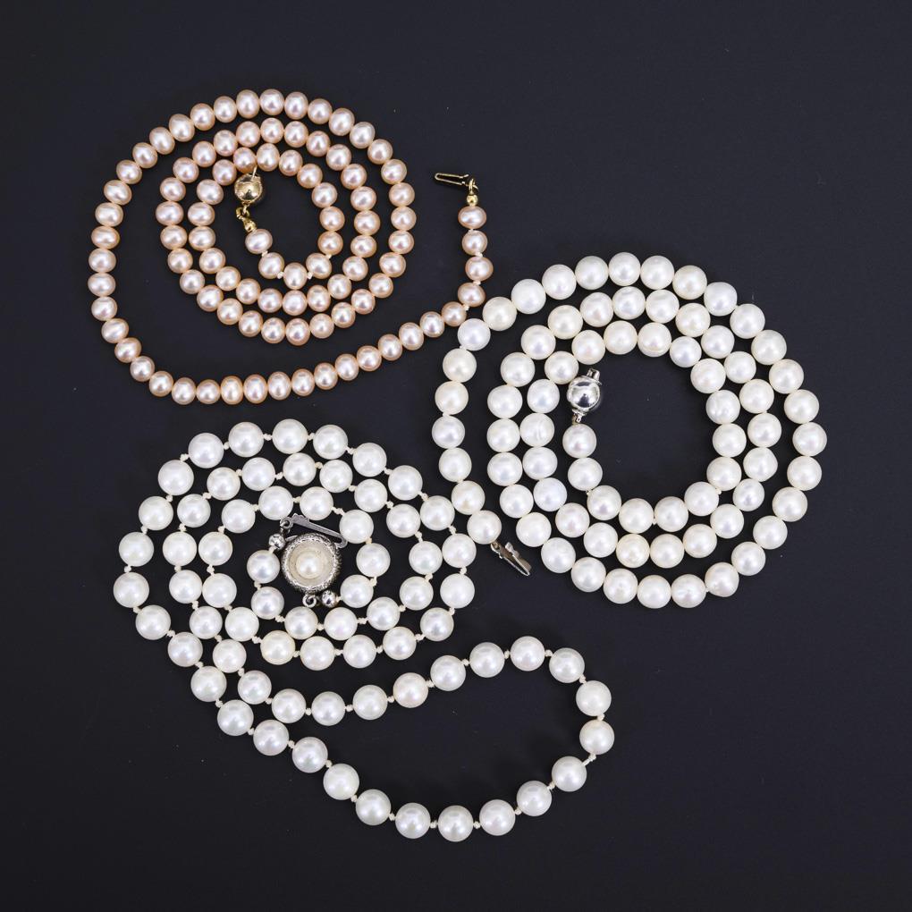 Silber 835/925 gestempelt. L 56/46/43 cm. Perlen Ø 0,6/0,4 cm. 25/24,2/14,1 g.