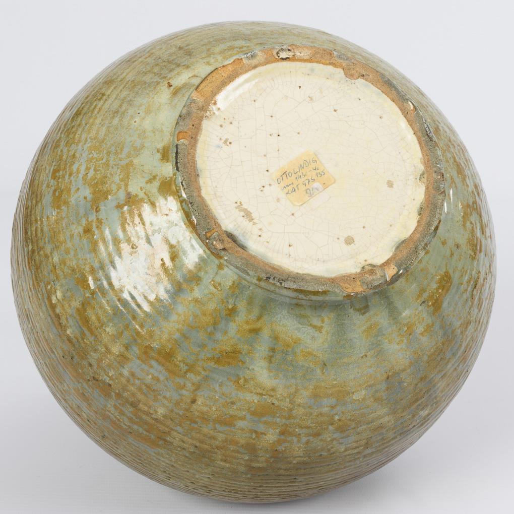 Steinzeug, Glasur in Grün, Braun und Blau. H 24 cm.