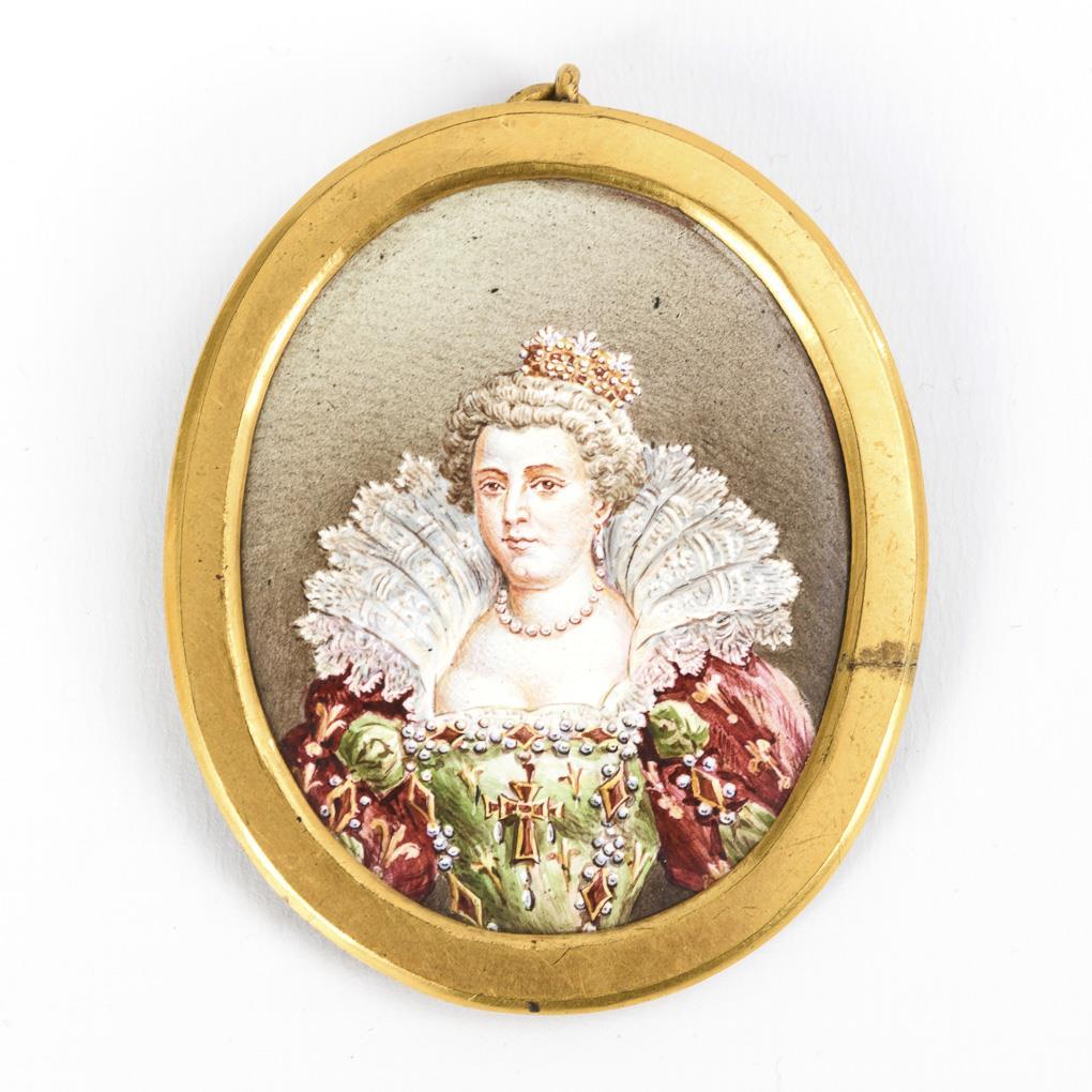 Sehr fein gemaltes Bildnis der Königin im Krönungsornat nach Frans Pourbus d.J.