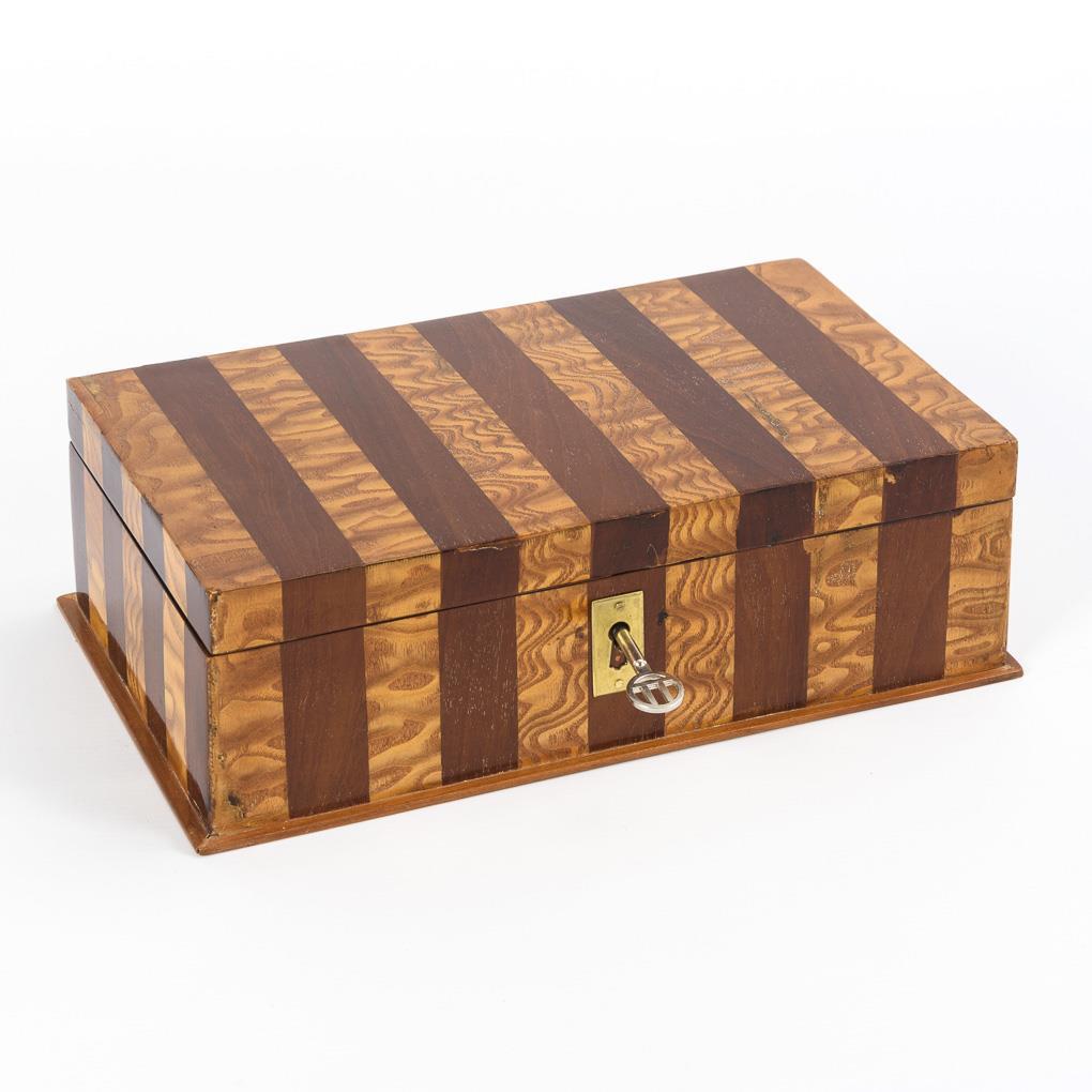 Streifenförmig marketierte Schatulle.