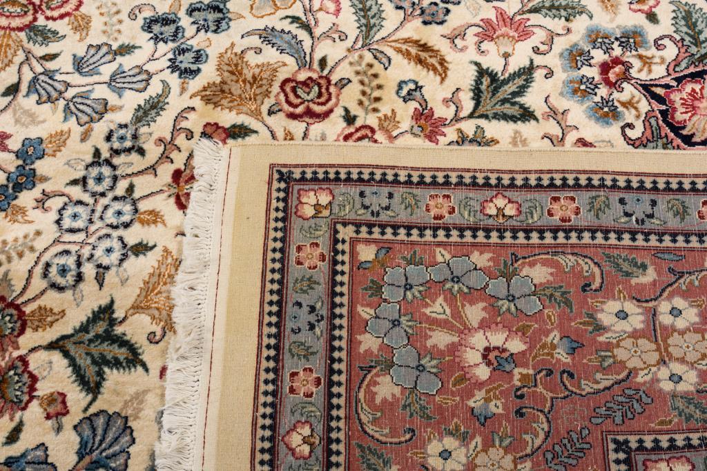 Wolle, feine Handknüpfung. Heller Polychromdekor.440 x 303 cm.