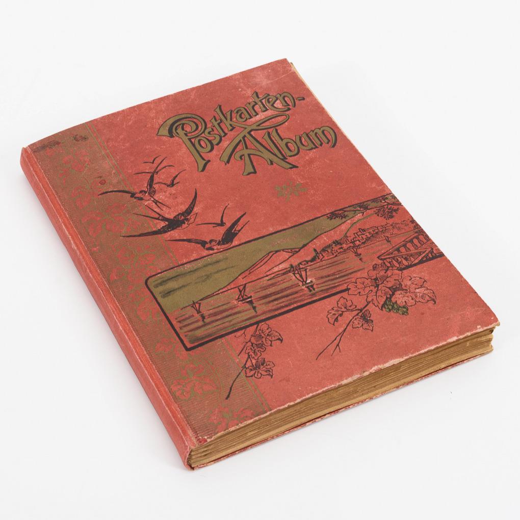 Ca. 80 oft farbige Ansichtskarten, um 1910/30 im roten "Postkarten-Album". Album mit stärkeren Gebrauchsspuren.