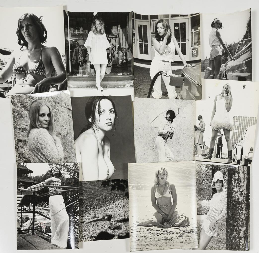Ca. 40 Fotografien mit Porträts weiblicher Models, Modefotografien, Akten oder Paarszenen, teils betitelt "Die Mädchen sind immer so einsam", "Glückliche Nichte", "Junge Mädchen - Alte Möbel" oder "Pelzmini in Blond". Leichte Alters-/Gebrauchsspuren.