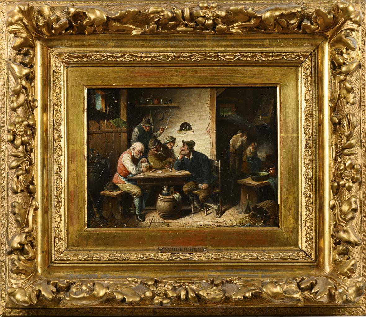 Die älteren Männer in geselliger Runde beim Rauchen und Spielen in der Wirtsstube. Minimale Altersspuren.