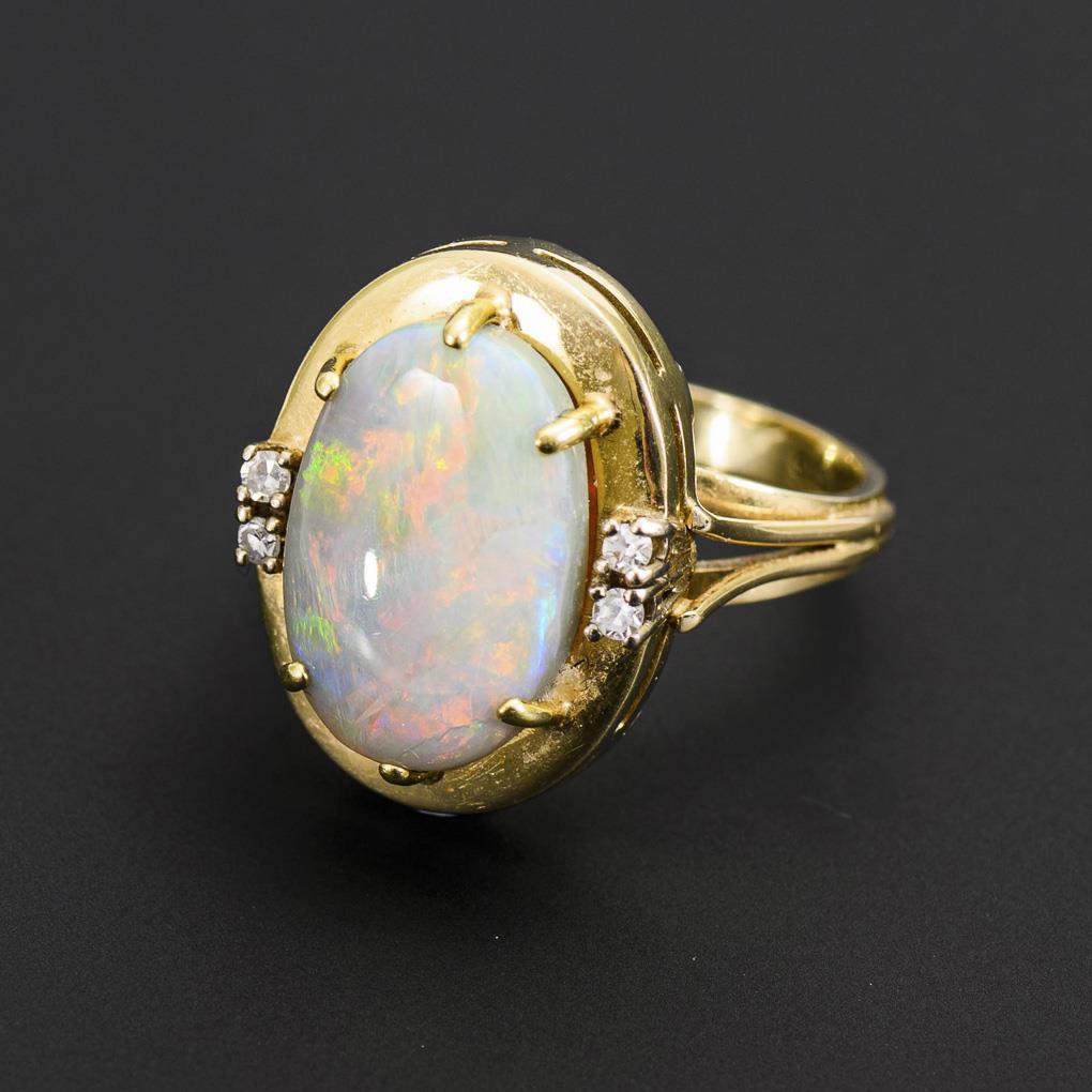 Krappengefasster Cabochon und 4 kleine Diamanten, zwischen mittlerer Schiene.