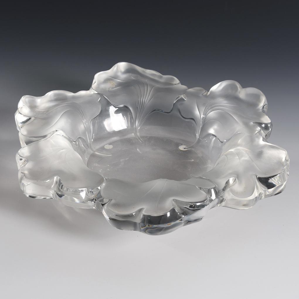 Schwere Schale mit stilisierten Kapuzinerkresseblättern als Fahne. 1 kleine Randbestoßung.