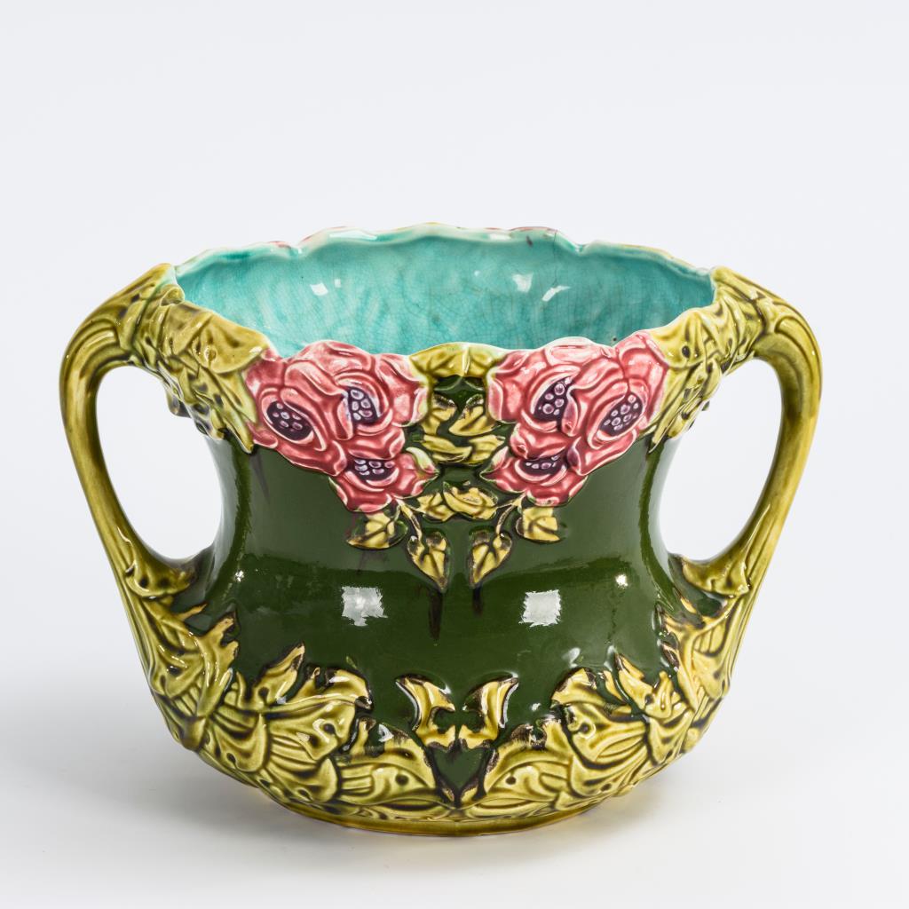 Majolika, farbig staffiert.H 22 cm, Ø 23 cm.
