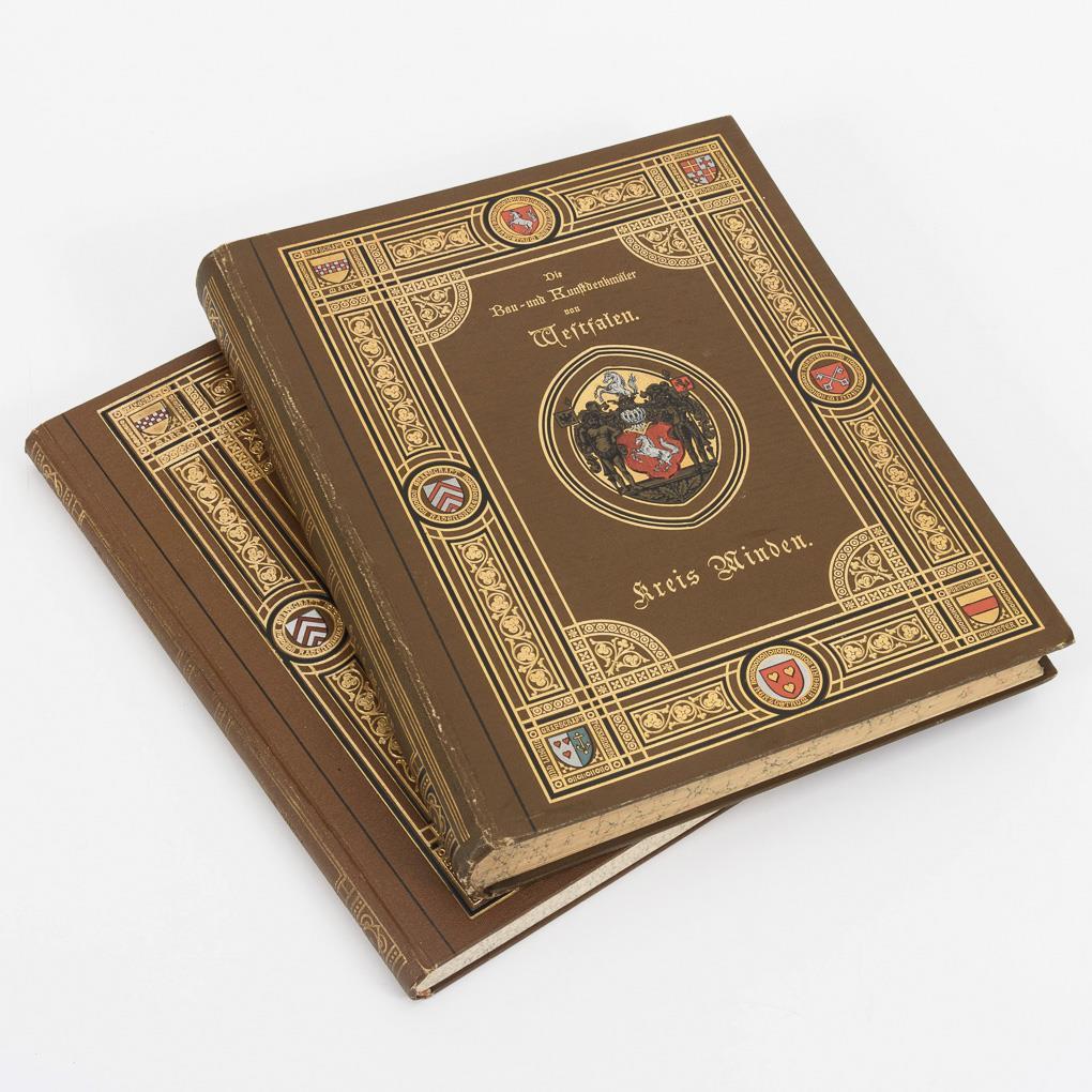 Büren: bearbeitet von J. Körner. 278 Seiten mit 2 Karten und 452 Abbildungen. / Minden: bearbeitet von A. Ludorff, 134 Seiten mit sehr vielen Tafeln. Beide im gleichen, goldgeprägten Leineneinband. Leichte Gebrauchsspuren.