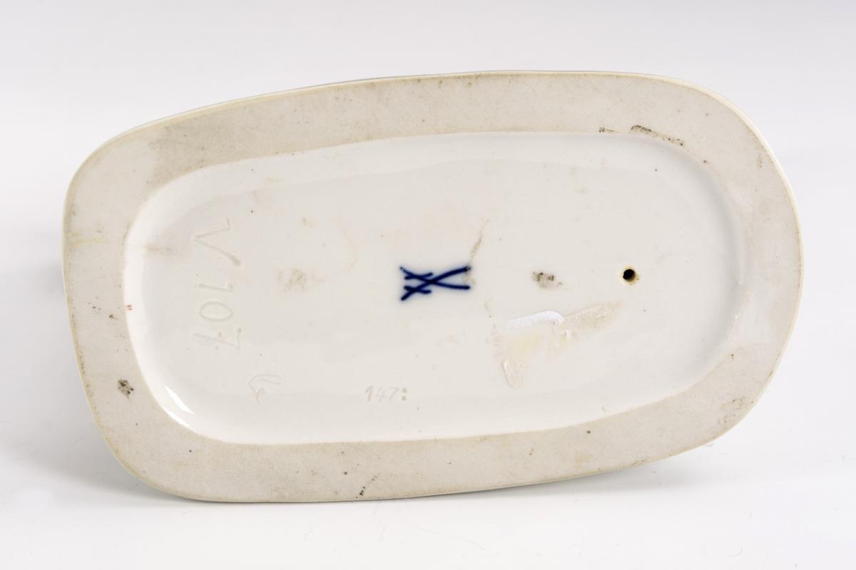 Weiß mit minimaler Auf- und Unterglasurstaffage. H 14 cm.