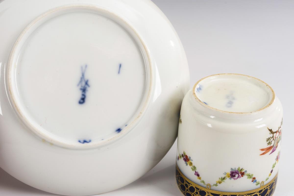 Deckeltasse mit Kobaltbordüre. Meissen.
