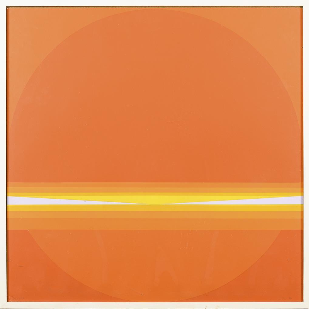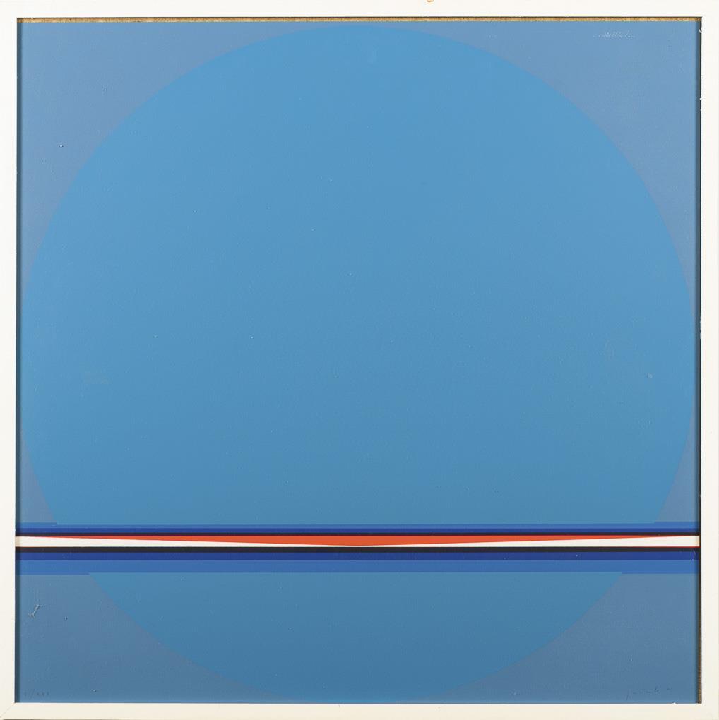 "Orange horizontal": Exemplar 5/100, [19]70, gerahmt & hinter Glas: 73 x 72,5 cm, Ecke unten links geknickt | "Blau-horizontal": Exemplar: V/XXX, [19]71, gerahmt & hinter Glas: 67,5 x 67,5 cm.