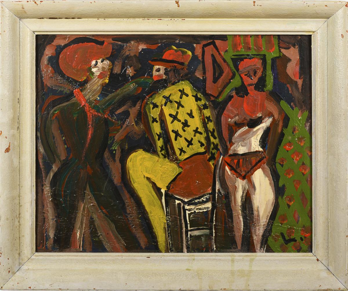 Expressiv ausgeführte Personen in abstrakter Umgebung.
