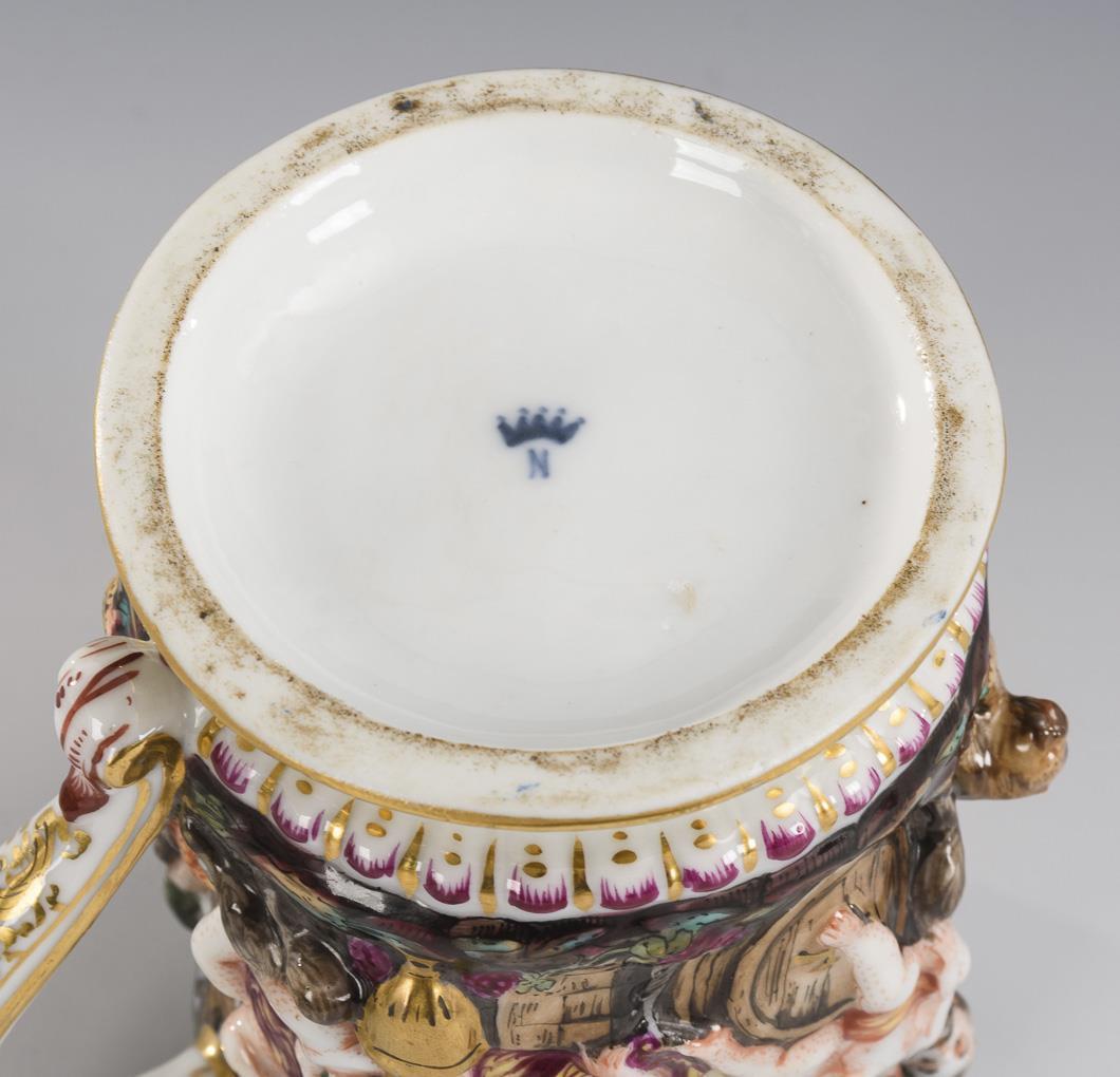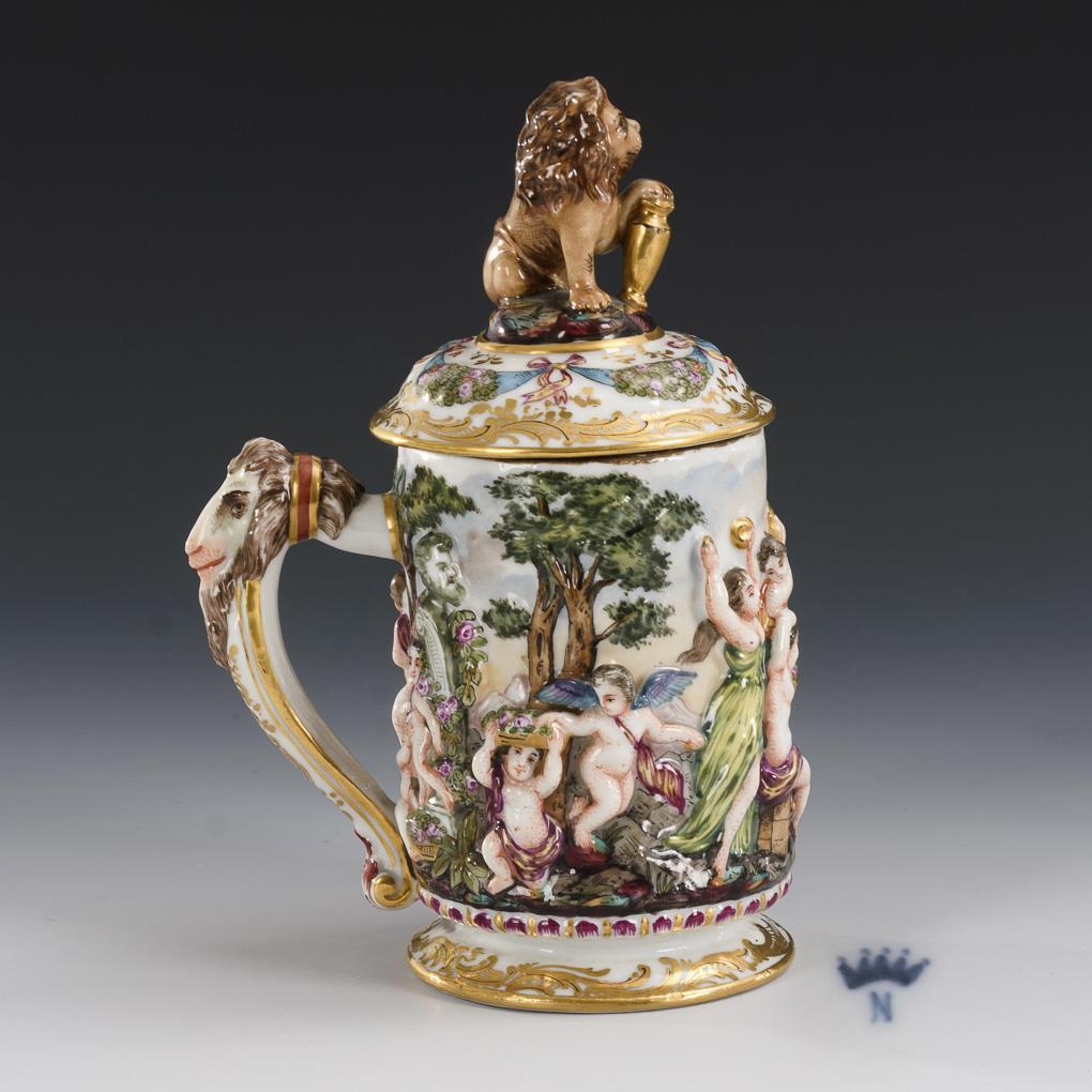 Bierkrug mit Capodimontedekor.