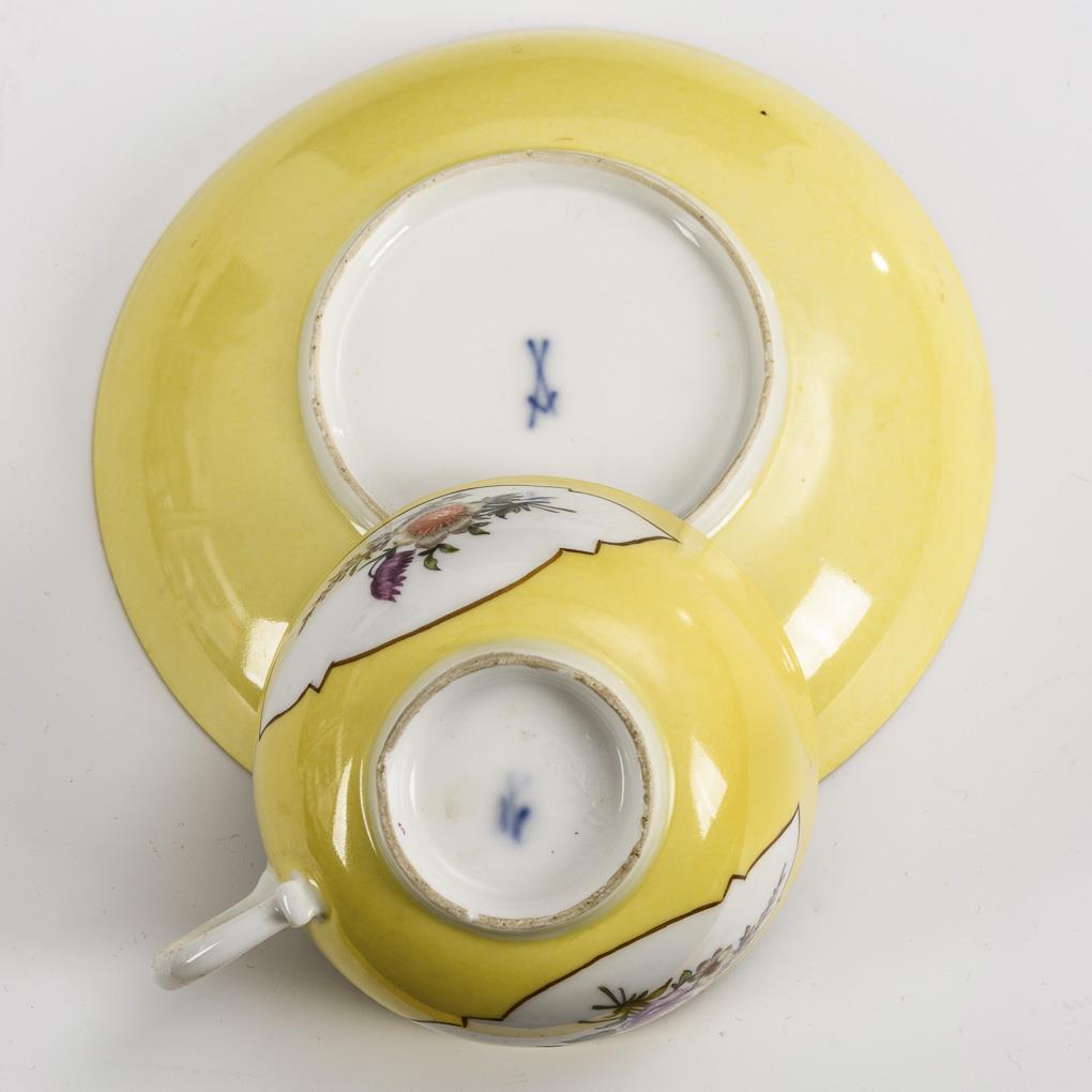 Tasse mit zitronengelbem Fond. Meissen.