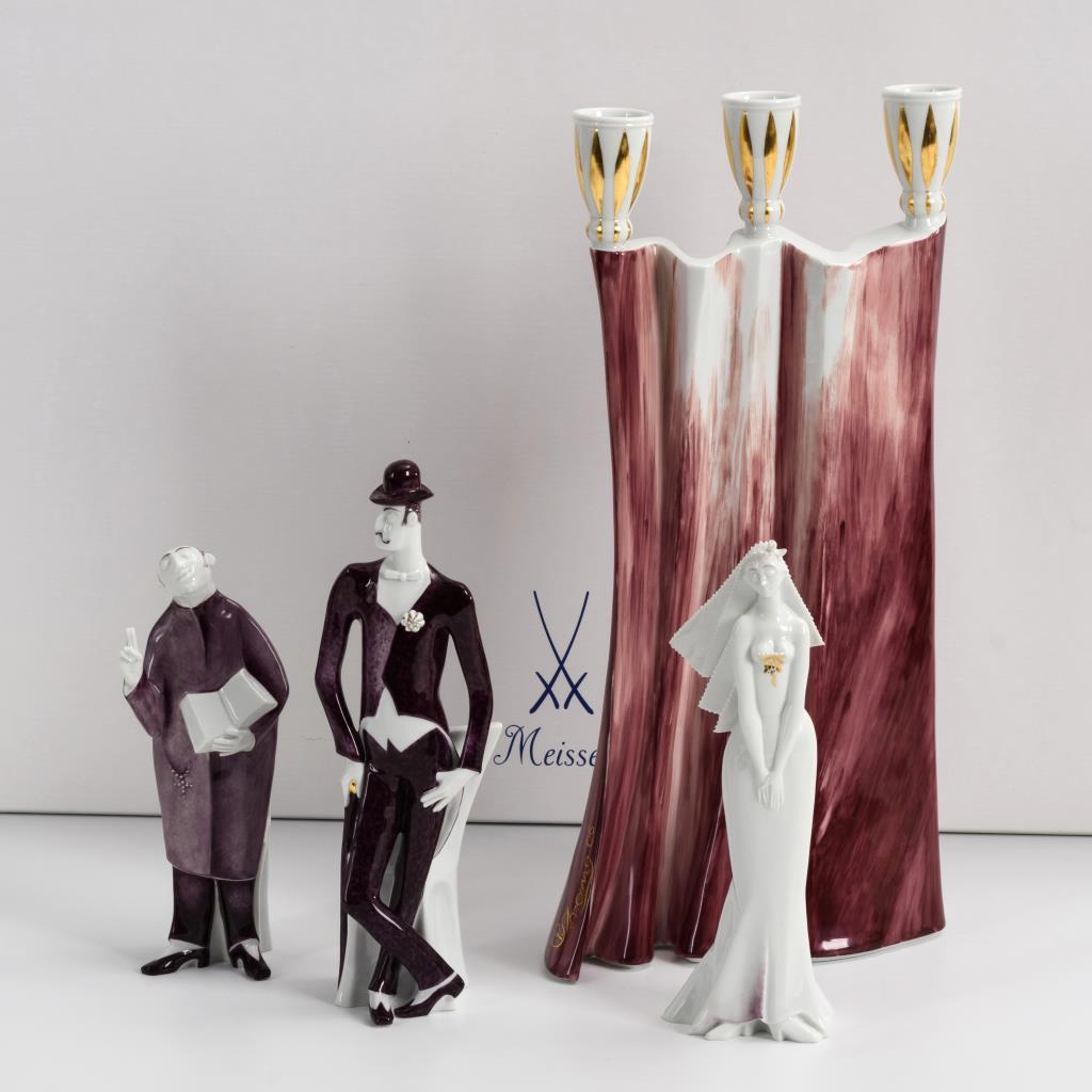 Schwertermarke, 1. Wahl.Jahreszeichen 2006.Signiert "PStrang 06" (Vorhang).Modell-Nr. 60451, 60452, 60453 und 60459, auf 70 Sätze limitiere Edition zum Peter Strang-Jubiläumsjahr 2006, dieses Ensemble trägt die Nr. 15/70.Entwurf: 1970.STRANG, Peter (* 1936 Dresden)