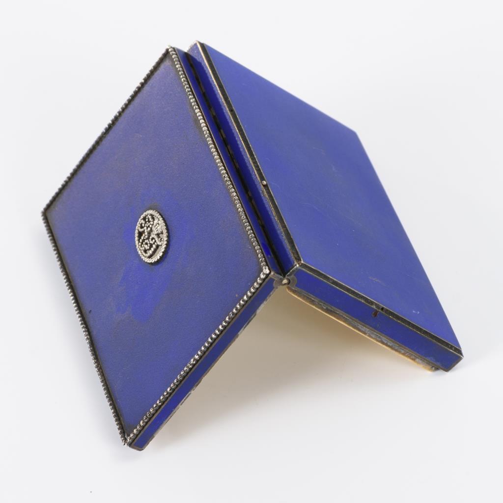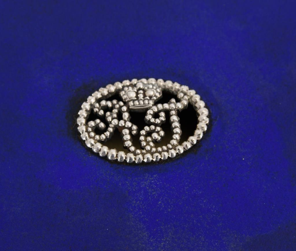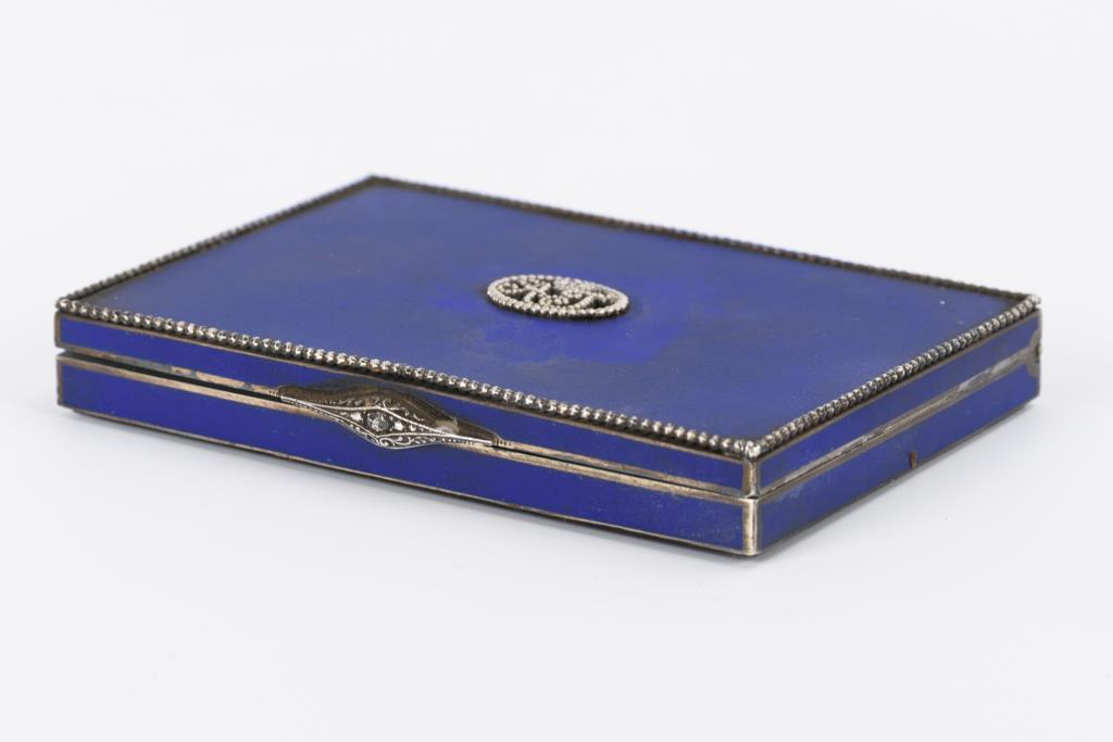 Blau emailliertes Silberetui mit bekröntem Monogramm AJ