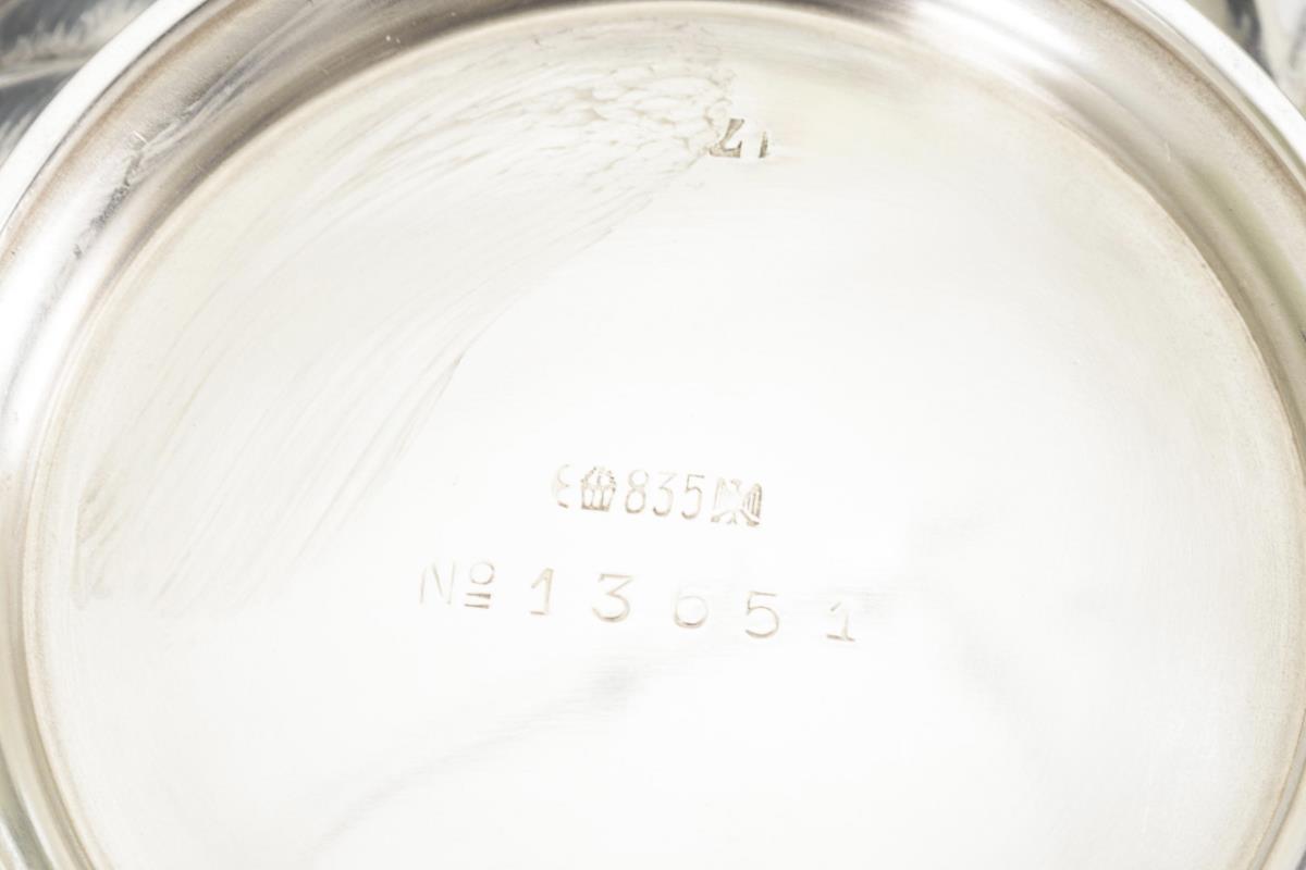 Silber, innen vergoldet. H 6/7 cm, L des Tabletts 24,5 cm. 325 g.
