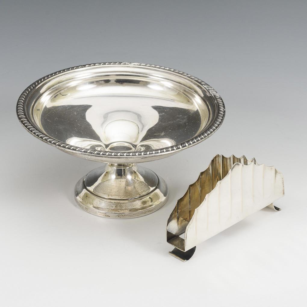 Runde Schale mit Kordelrand (H 8,5 cm, Ø 17,5 cm). / Gerippter Art-déco-Serviettenständer (7 x 12 x 2 cm). Gebrauchsspuren, Schale mit wenigen kleinen Dellen.