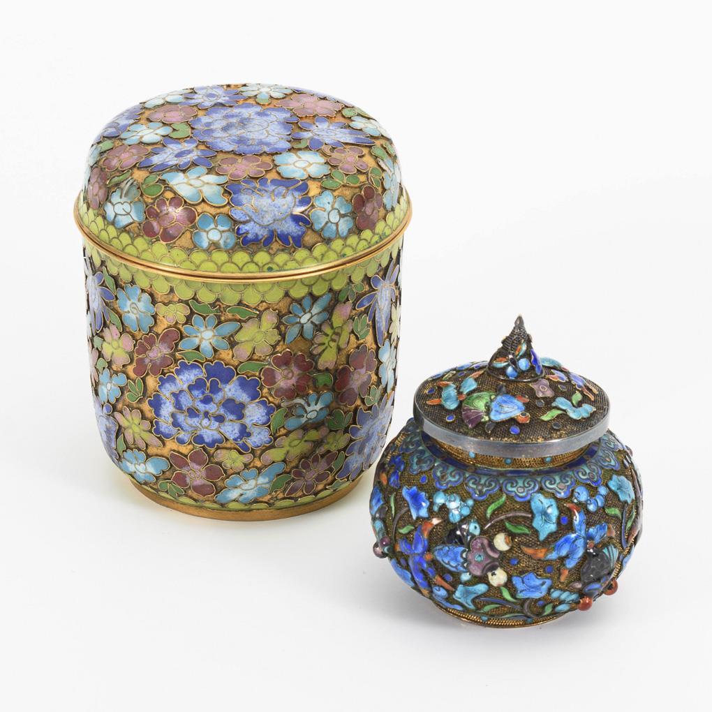 2 aufwändig gearbeitete Cloisonné-Dosen.