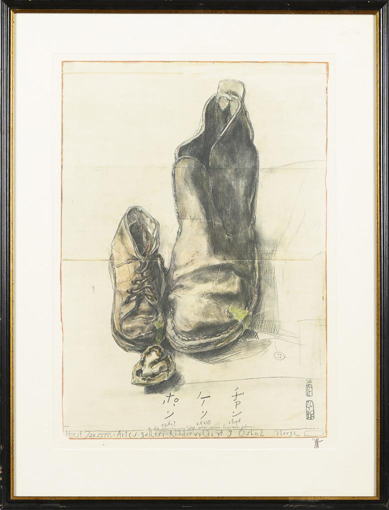 Plakat mit Schuhen zur Ausstellung in Oslo