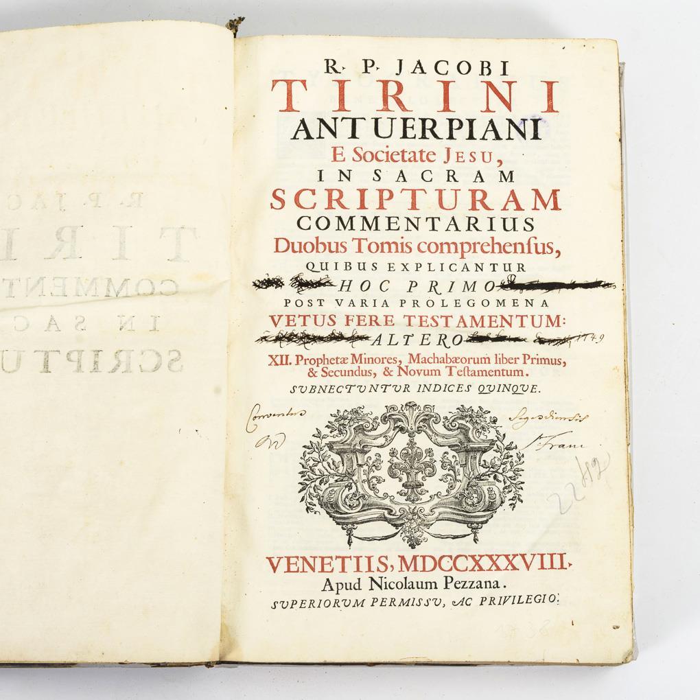 "Duobus tomis comprehensus, quibus explicantur, hoc primo post varia prolegomena vetus vere testamentum: altero XII. Prophetae Minores, Machabaeorum liber Primus & Secundus, & Novum testamentum".