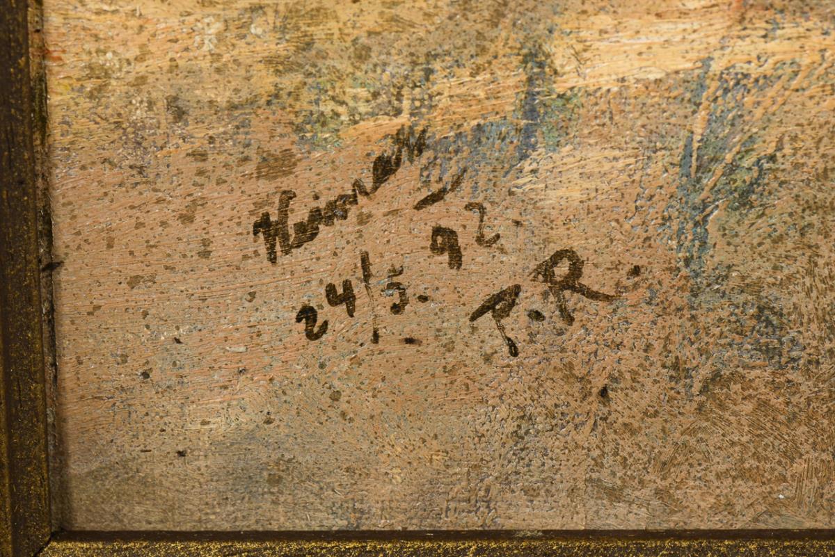 Öl/Leinwand/Holz. Links unten monogrammiert mit Ortsangabe Weimar. Datiert: 24/5. (18)92.