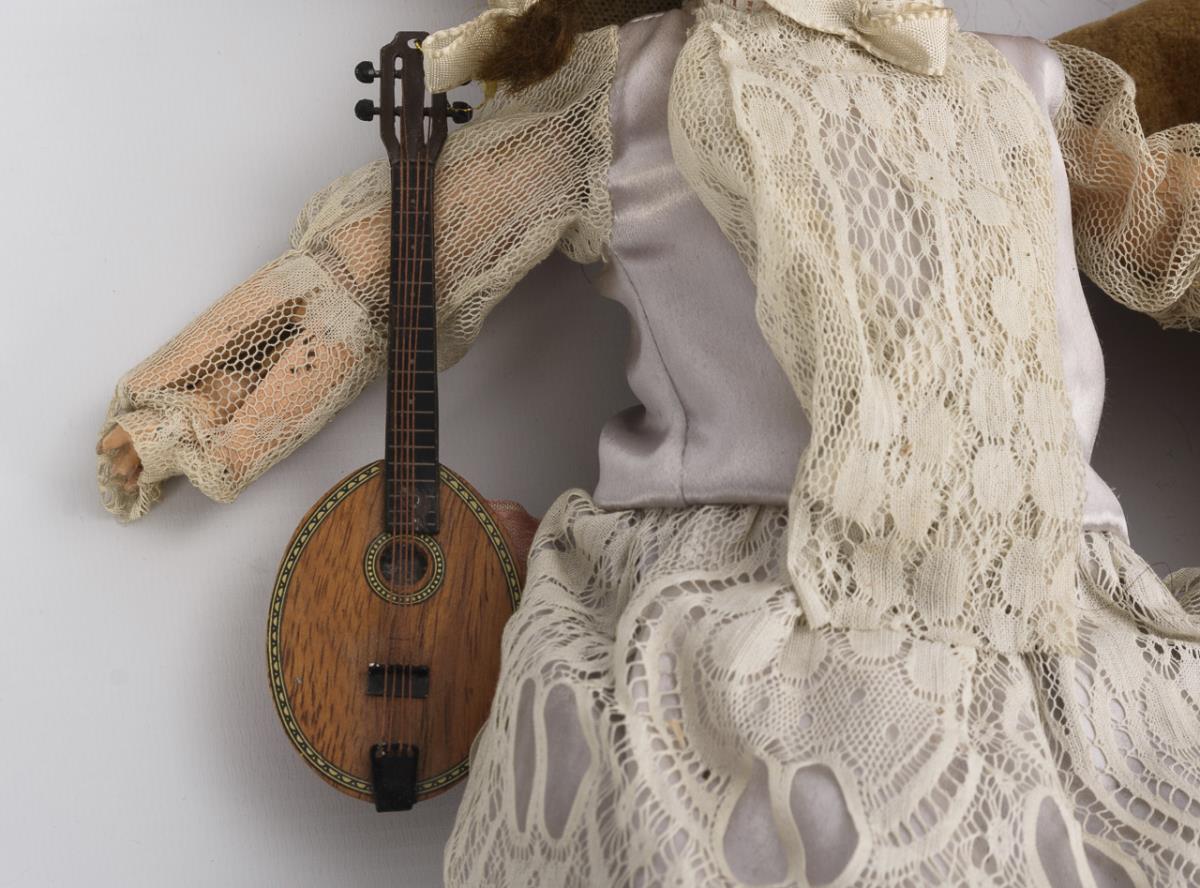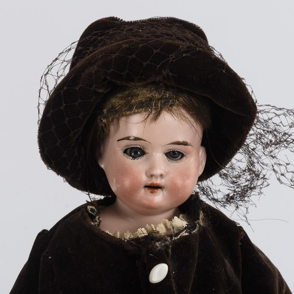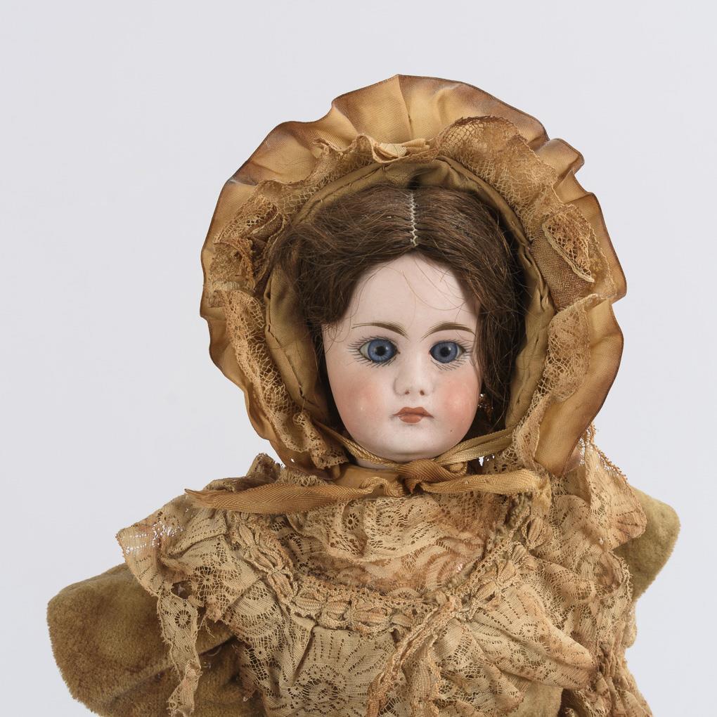 2x Kurbelkopf mit Gliederkörper, 1x Brustkopf mit Lederkörper und Massearmen. Alle elegant bekleidet, mit langem Kleid und Haube. Mit Defekten: u.a. 1x Haarriss am Hinterkopf, 1x Augenausschnitte mit Chips, 1x Arm defekt.