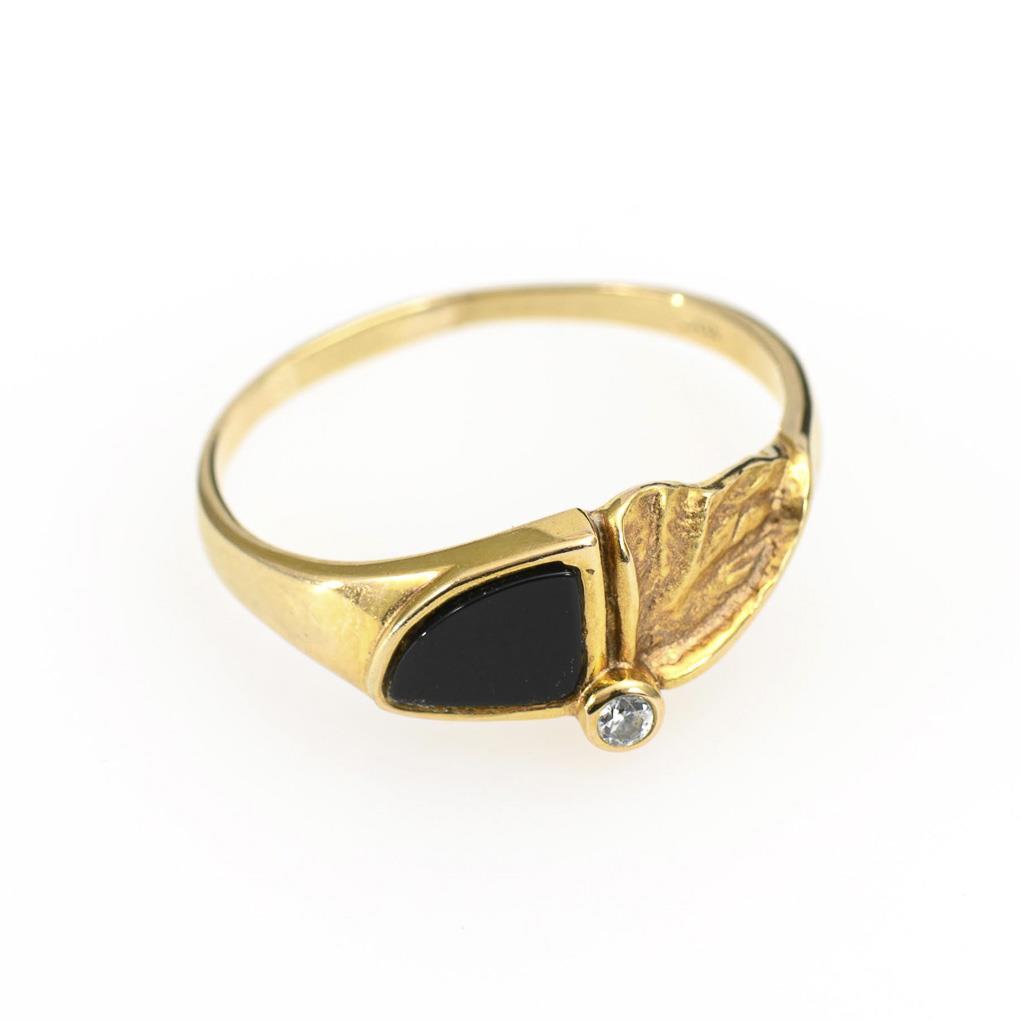 Zargengefasstes Onyxsegment und kleiner Zirkonia zwischen schmaler Schiene.