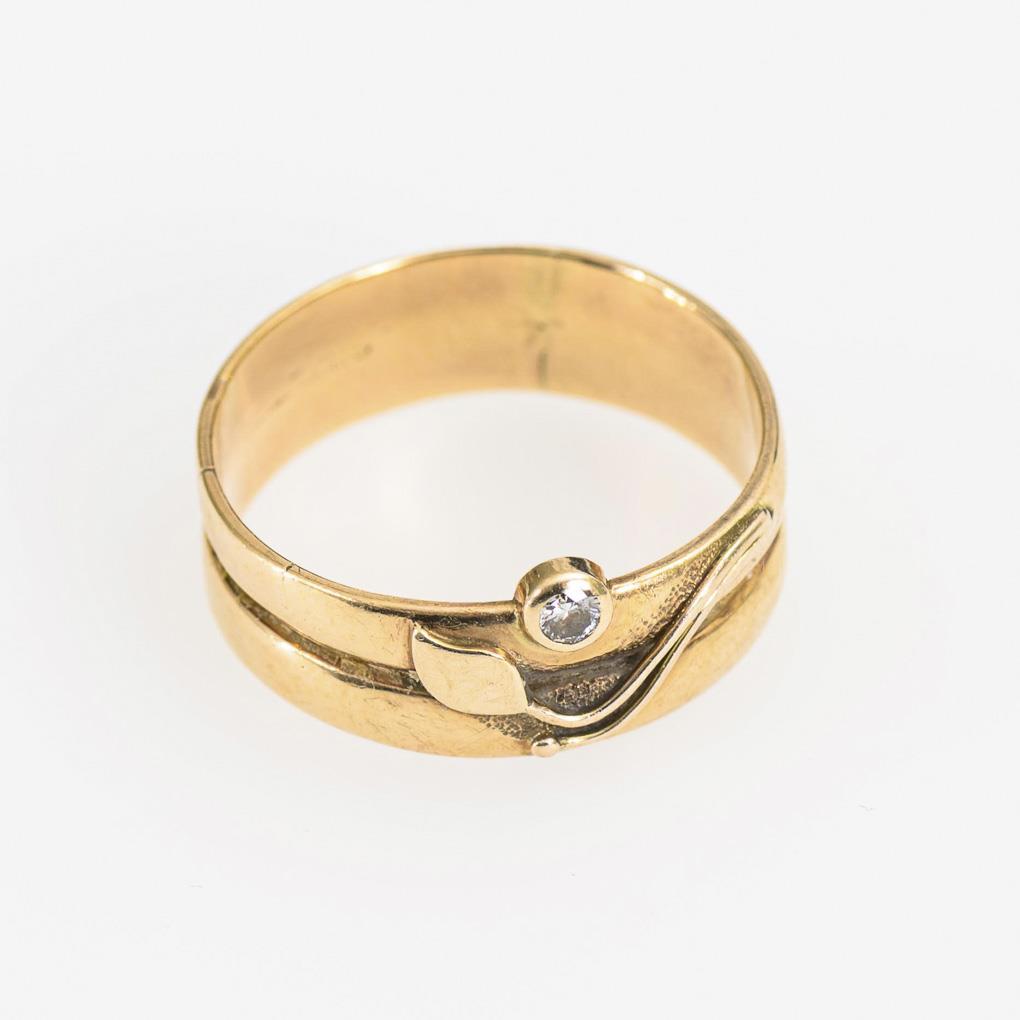 2-schieniger Brandring mit kleinem, zargengefasstem Brillant.