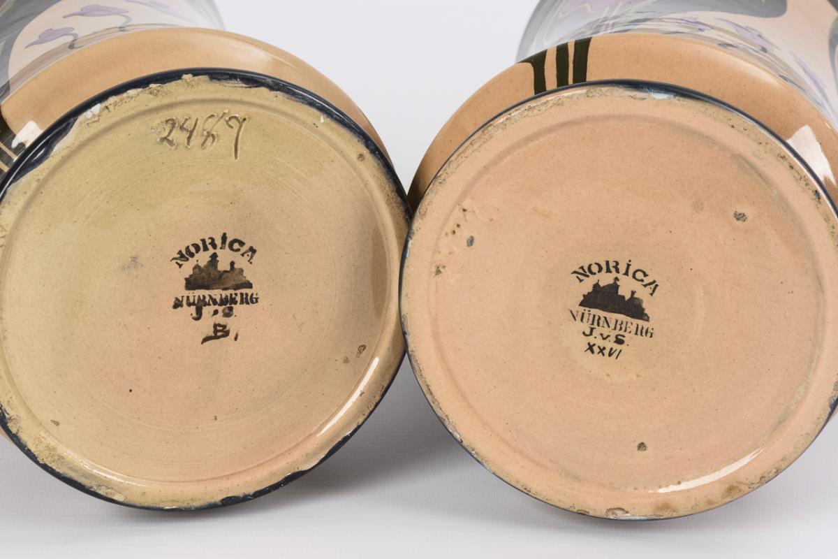 Paar Jugendstil-Vasen mit Blumenmalerei. Johann von Schwarz / Nürnberg.