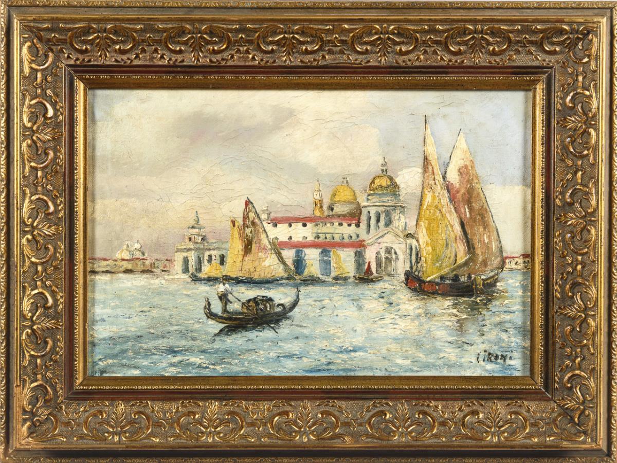Segler vor der italienischen Stadt nahe der Santa Maria della Salute. Restauriert mit Hinterklebungen.