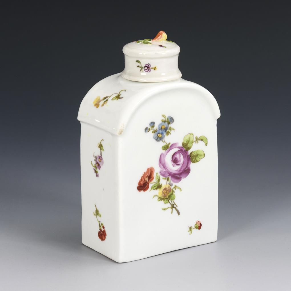 Rechteckige Dose mit gerundeter Schulter und Birnenknaufdeckel. Minimale Bestoßung an 1 Schulterkante.
