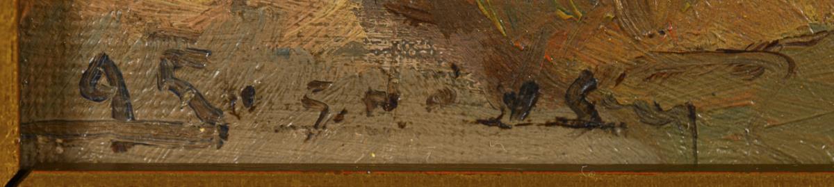 Öl/Karton. Links unten undeutlich signiert, verso bezeichnet/betitelt.
