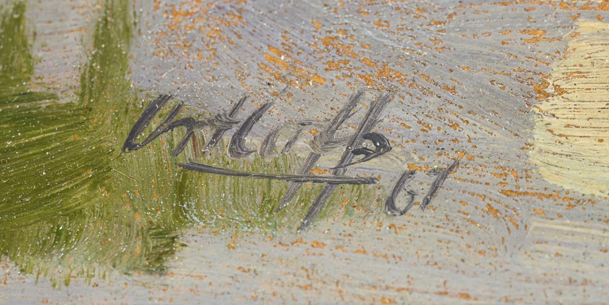 Öl/Karton. Links unten signiert/datiert: (19)61, verso betitelt.
