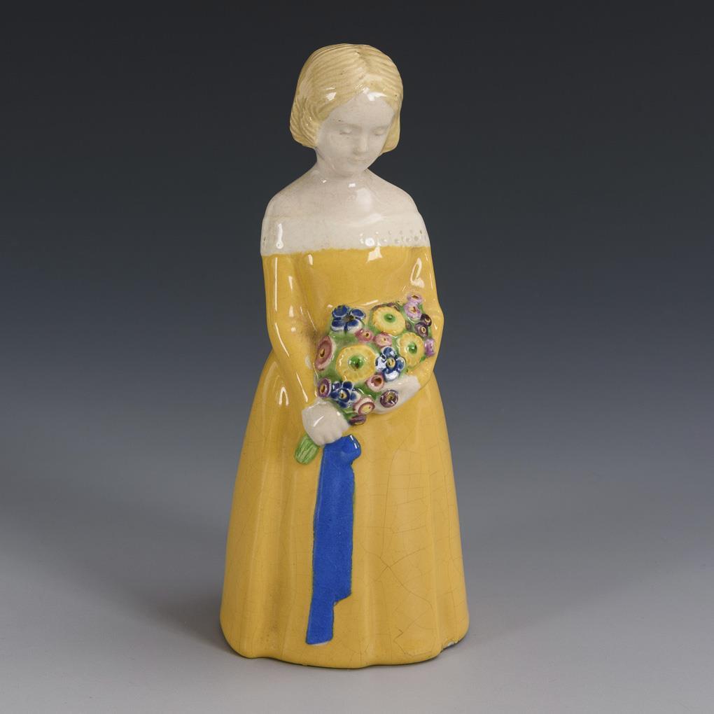 Stehendes Mädchen mit Blumenstrauß. Wiener Kunstkeramische Werkstätte Busch & Ludescher.