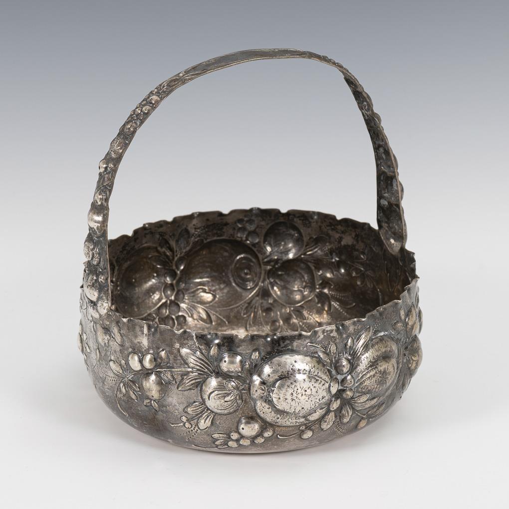 Rundes, reich reliefiertes Henkelkörbchen im Hanauer Stil. 1 Delle am Korpus.