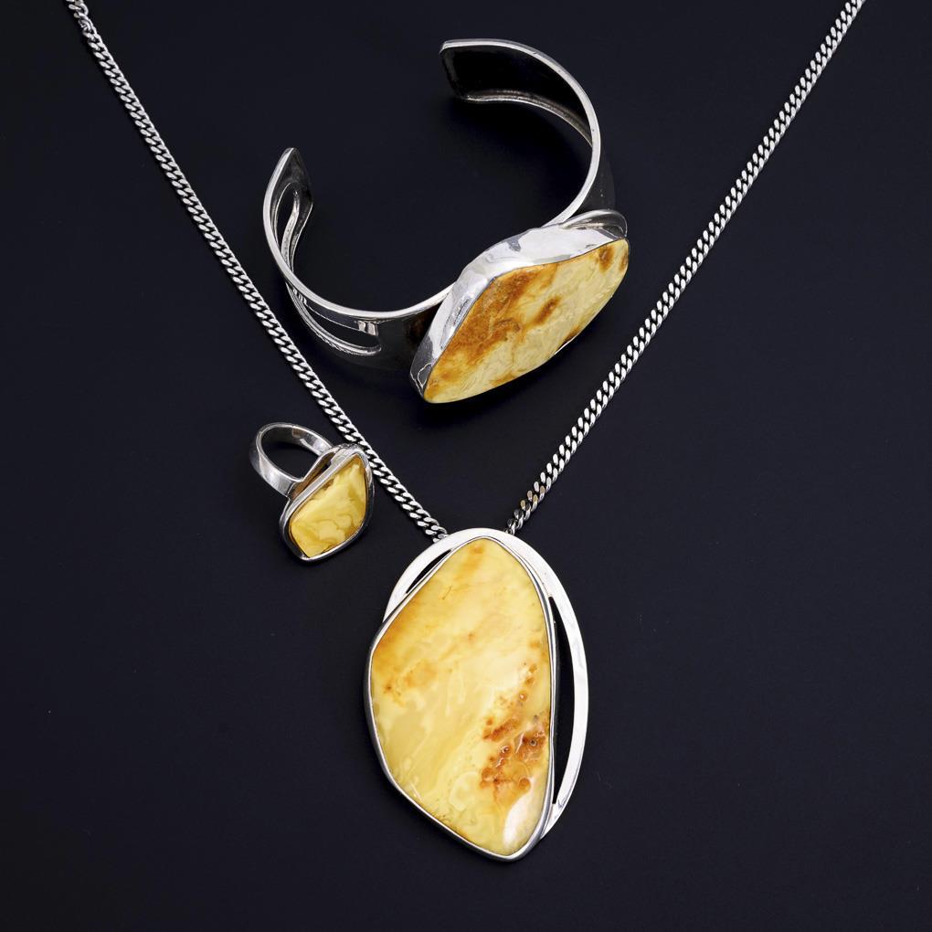 3-teiliges Designer-Schmuckset mit Bernsteinen.