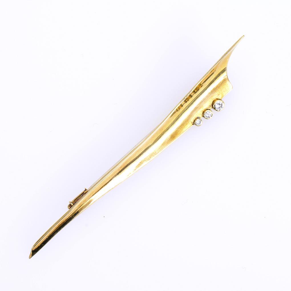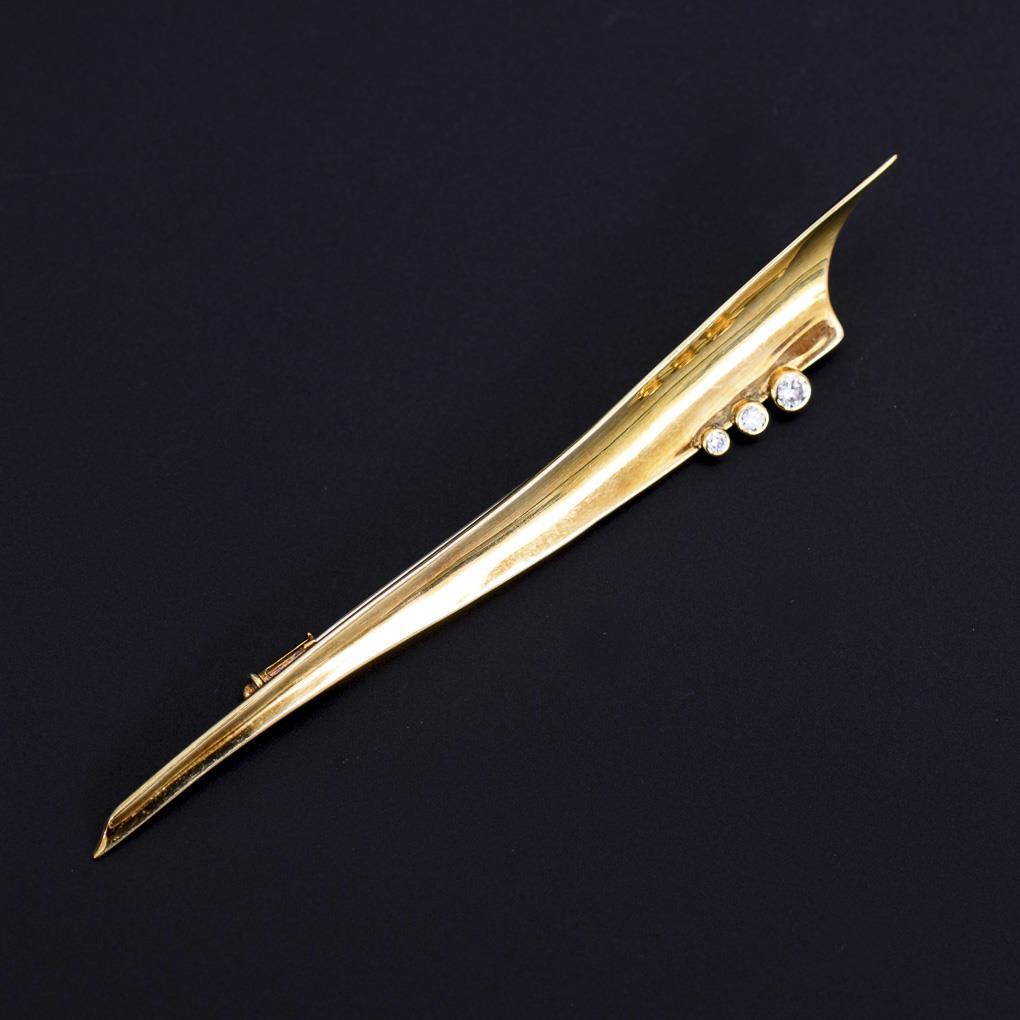 Lange Brosche mit 3 zargengefaßten Brillanten. Schiebehaken.