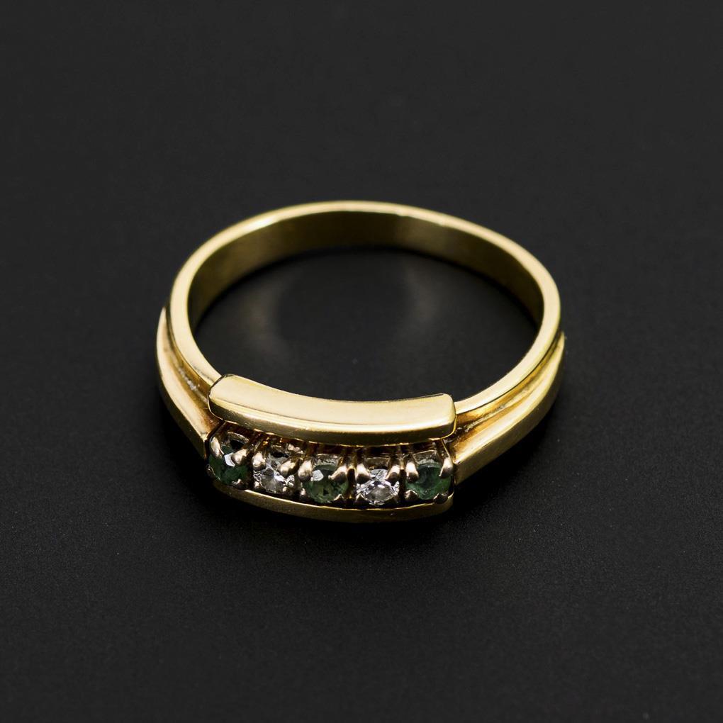 2 kleine, chatongefasste Brillanten und 3 Smaragde zwischen mittlerer Schiene.