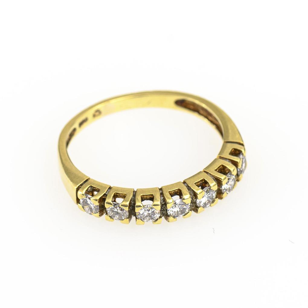 7 chatongefasste Brillanten zwischen schmaler Schiene.