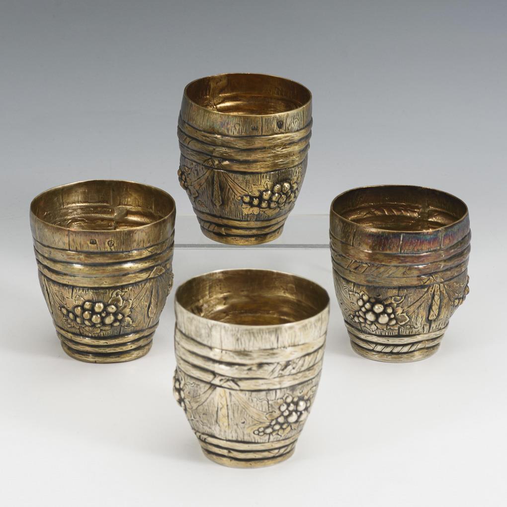 4 reliefierte Silberbecher. B. Neresheimer & Söhne, Hanau.