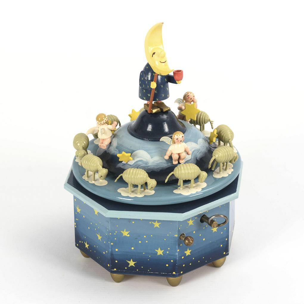 Spieluhr mit Schäfchen und Mond. Erzgebirge.