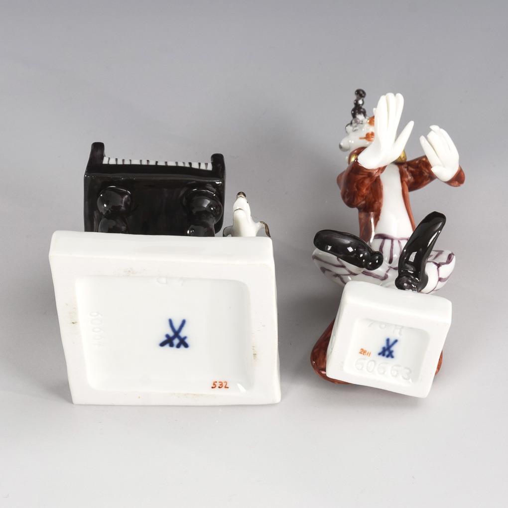 Polychrom bemalt, goldstaffiert. H 8,5 und 6,5 cm.