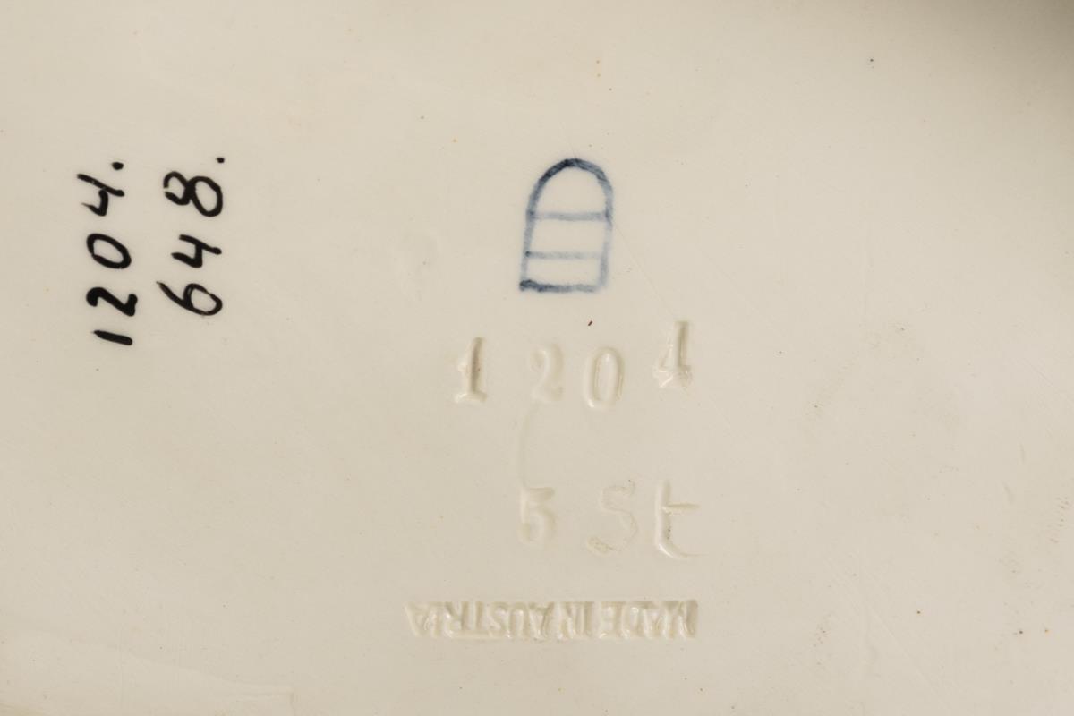 Bindenschildmarke mit Zusatz "Made in Austria", wohl Wiener Porzellanfabrik Augarten, nach 1924. Modell-Nr. 1204.